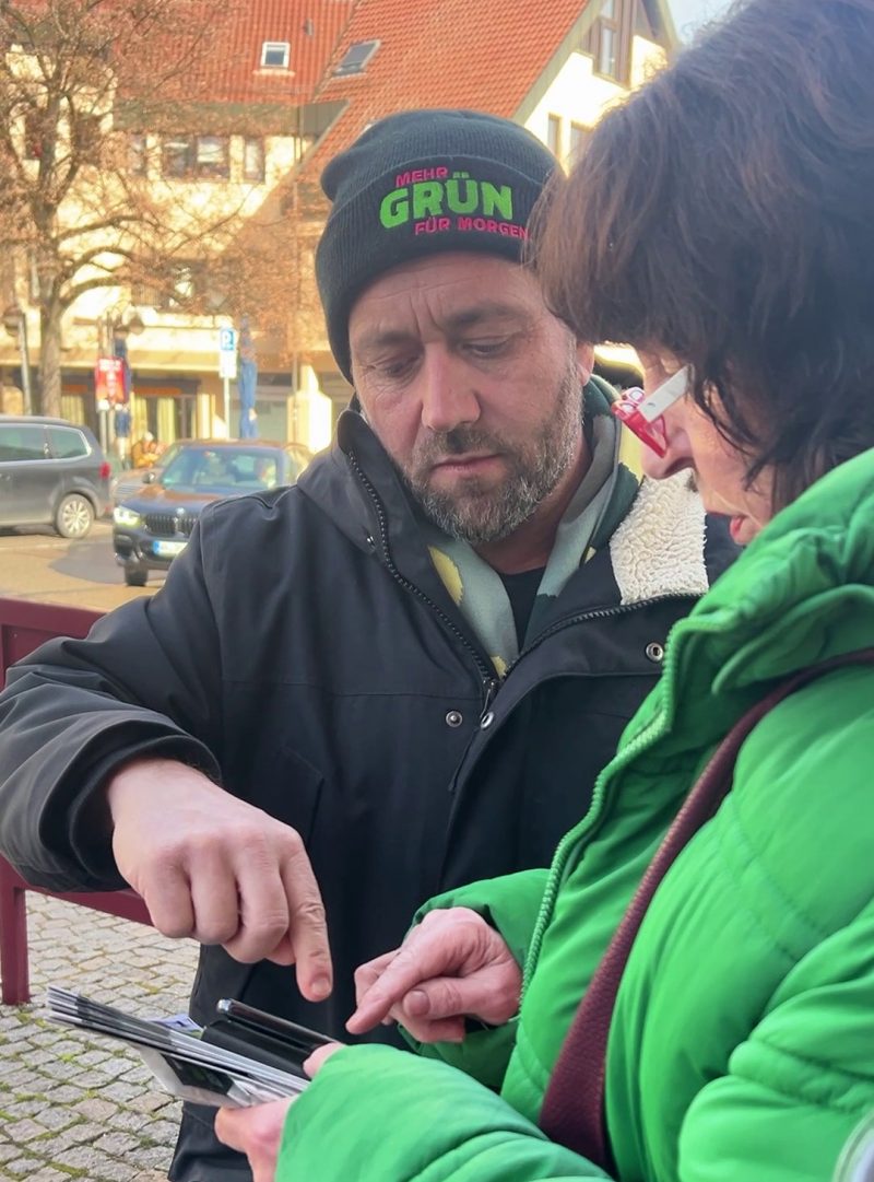 Der Kandidat für den Wahlkreis Schorndorf von Bündnis90/die Grünen, Florian Haßler, machte am 7. Februar 2026 einen Doppeleinsatz an den Wahlkampfständen des Ortsvereines in Weinstadt und anschließend in Kernen. Angenehm war das gute Wetter und die etwas wärmeren Temperaturen. Mit den anderen demokratischen Parteien vor Ort, die in Kernen zufällig auch mit ihren Kandidat*innen präsent waren, wurden in der Wartezeit kollegiale Gespräche geführt. Die meisten Standbesucher, die zu uns kamen, waren ohnehin schon Grün-affin, nahmen dann aber die Gelegenheit wahr, mit Florian Haßler persönliche Gespräche zu führen, über den ökologischen Umbau der Wirtschaft oder Hintergründe diverser politischer Entscheidungen, die er als Staatssekretär erläutern konnte. Tatsächlich nahmen auch einige die Gelegenheit wahr, mit ihm als Staatssekretär im Staatsministerium und Vertreter des Landes Baden-Württemberg bei der Europäischen Union ins Gespräch zu kommen.